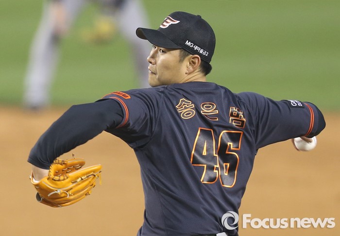(서울=포커스뉴스) 22일 서울 잠실구장에서 열린 2016 프로야구 한화-두산 경기에서 1회말 한화 선발투수 송은범이 투구하고 있다