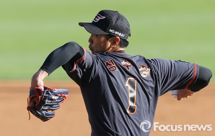 (서울=포커스뉴스) 24일 서울 잠실구장에서 열린 2016 프로야구 한화-두산 경기에서 1회말 한화 선발투수 심수창이 투구하고 있다.
