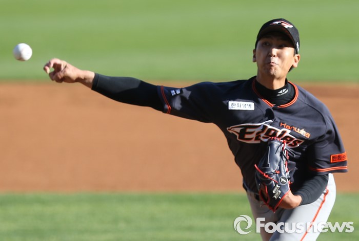 (서울=포커스뉴스) 24일 서울 잠실구장에서 열린 2016 프로야구 한화-두산 경기에서 1회말 한화 선발투수 심수창이 투구하고 있다.