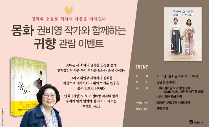 소설 '몽화'의 권비영 작가와 함께 하는 영화 '귀향' 관람 이벤트
