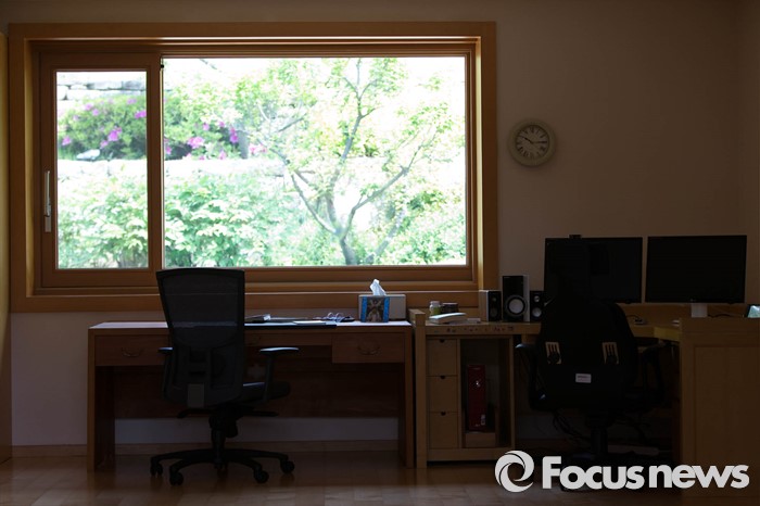 (김해=포커스뉴스) 고 노무현 전 대통령 서거 7주기를 앞두고 1일 오전 노 전 대통령의 사저가 공개되고 있다. 사진은 사저 안채 고 노무현 전 대통령의 책상과 컴퓨터.