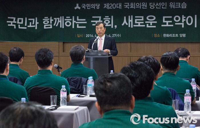 (양평=포커스뉴스) 김병준 전 대통령 정책실장이 26일 오후 경기도 양평 한화리조트에서 열린 국민의당 20대 총선 당선인 워크숍에 참석해 모두발언 하고 있다.