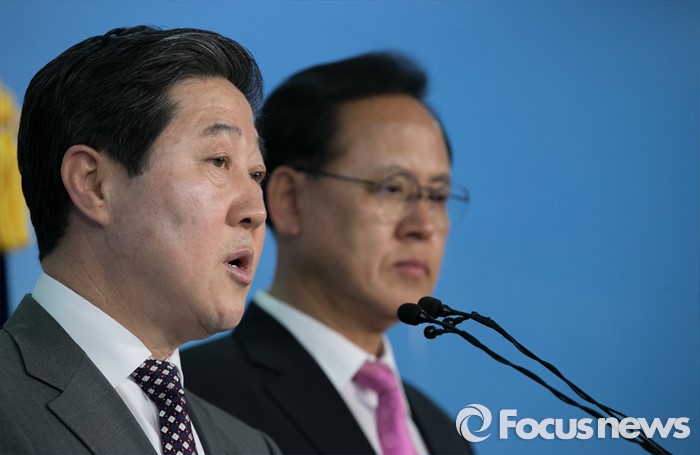 한편, 박근혜 대통령은 지난 26일 언론사 편집·보도국장과의 간담회에서 "자기 정치를 한다고 대통령을 더 힘들게 만든 것에 비애를 많이 느꼈다"며 유승민 무소속 의원을 겨냥했다. 이를 두고 일각에서는 무소속 당선인들의 복당에 '빨간 불'이 켜진 것 아니냐는 지적이 제기되기도 했다.유기준(왼쪽) 새누리당 의원이 28일 오후 서울 여의도 국회 정론관에서 정책위의장 러닝메이트 후보인 이명수 의원과 원내대표 출마 기자회견을 하고 있다. 2016.04.28 박동욱 기자