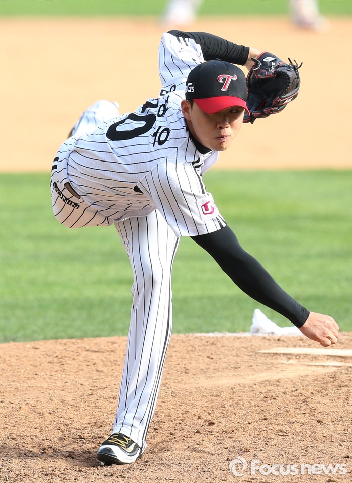 (서울=포커스뉴스) 1일 서울 잠실구장에서 열린 2016 프로야구 kt-LG 경기에서 세이브를 따낸 LG 투수 임정우가 9회초 투구하고 있다.