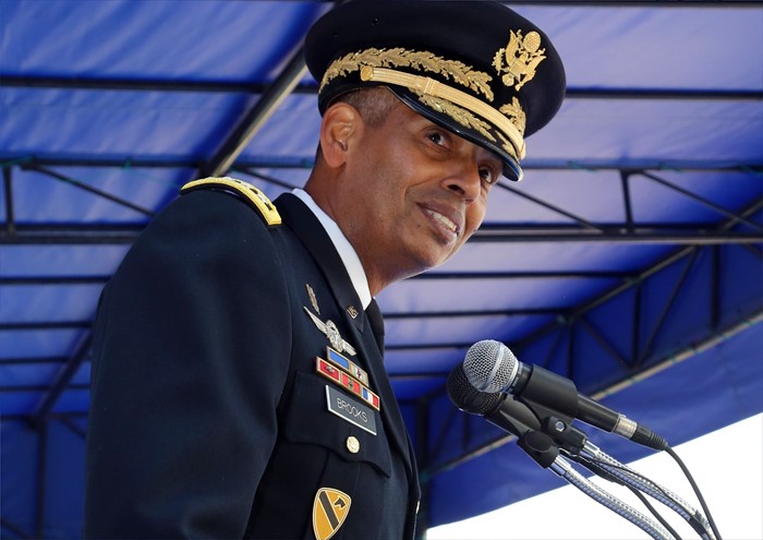 (서울=포커스뉴스) 빈센트 브룩스 신임 한·미연합사령관 겸 주한미군사령관이 30일 서울 용산기지 나이트필드에서 열린 이취임식에서 취임사를 하고 있다. <사진제공=주한미군 홈페이지>