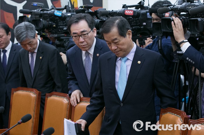 이어 황 차관은 "북한은 굶주리고 있는 주민 생활은 아랑곳하지 않고 김정은 독재체제를 유지하기 위해 언제든 추가 핵실험을 할 수 있는 상태"라며 "북핵·미사일은 바로 우리 대한민국을 위협하는 일이며 국가안보를 지키는 일이 바로 우리 일이라는 것을 직시해 국가와 국민의 일치된 노력이 필요하다"고 당부했다.황인무(오른쪽부터) 국방부 차관과, 조태열 외교부 제2차관, 황부기 통일부 차관이 28일 오전 서울 여의도 국회에서 열린 대북 관련 긴급 안보 대책회에 참석하고 있다. 2016.04.28 박철중 기자