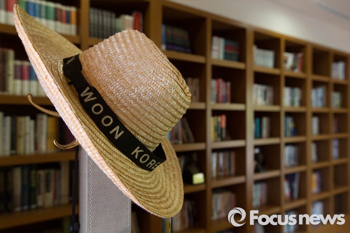 (김해=포커스뉴스) 고 노무현 전 대통령 서거 7주기를 앞두고 1일 오전 노 전 대통령의 사저가 공개되고 있다. 서재 한 편에 밀짚모자가 걸려있다.