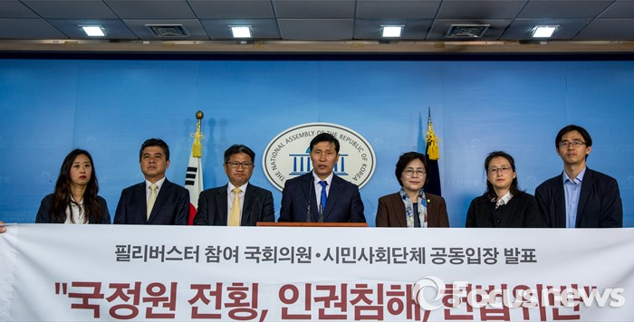 안민석·유승희·이학영·진선민 더불어민주당 의원과 시민사회단체 관계자들은 이날 오전 국회 정론관에서 기자회견을 열고 "(시행령은) 법률을 넘어서서 국정원의 권한을 확대하고, 국정원을 감시하고 통제할 수 있는 장치는 물론 인권침해방지 대책도 마련돼 있지 않다"며 이같이 밝혔다.