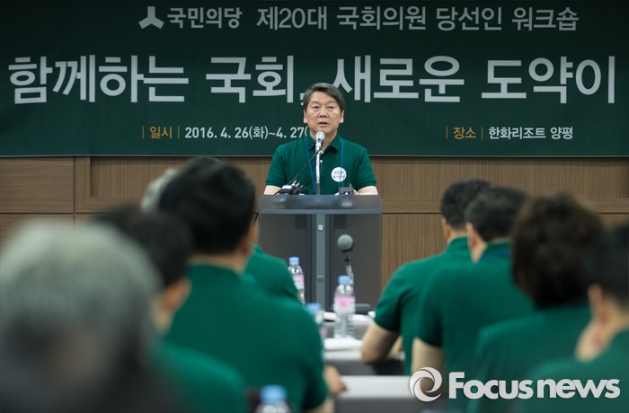 (양평=포커스뉴스) 안철수 국민의당 상임공동대표가 26일 오후 경기도 양평 한화리조트에서 열린 20대 총선 당선인 워크숍에 참석해 인사말을 하고 있다.