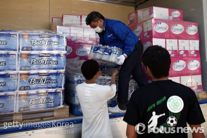 통조림, 각티슈, 생수 등 구호물품 전달