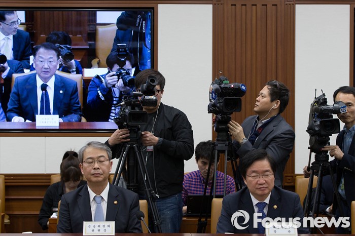(서울=포커스뉴스) 28일 오후 서울 종로구 정부서울청사에서 열린 '경제관계장관회의'에 참석한 임종룡(왼쪽) 금융위원장과 김영석 해양수산부 장관이 유일호 부총리의 모두발언을 듣고 있다.
