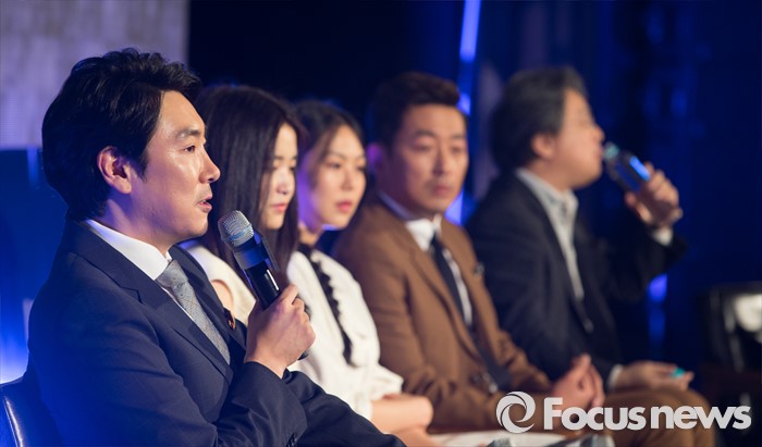 '아가씨'는 박찬욱 감독이 7년 만에 국내에 복귀한 작품이다. 이는 '제69회 칸 국제영화제' 경쟁부문에 초청되며 이미 작품성을 인정받았다. 오는 6월 개봉해 관객과 만날 예정이다.(서울=포커스뉴스) 2일 오전 서울 중구 웨스틴조선호텔에서 열린 영화 '아가씨' 제작보고회에 참석한 배우 조진웅이 인사말을 하고 있다. 2016.05.02 김유근 기자