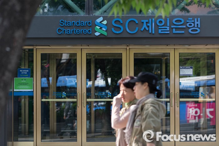 (서울=포커스뉴스) 지난 6일 SC제일은행은 브랜드명의를 '한국SC은행'에서 'SC제일은행'으로 바꿨다. 28일 오후 서울 종로구 SC제일은행 본점에 새로운 간판이 걸려있다.