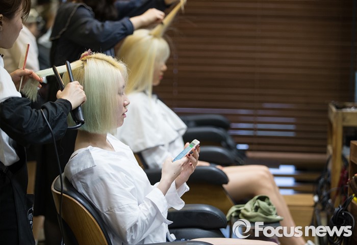 (서울=포커스뉴스) 3일 오후 서울 강남구 컬처앤네이처 청담점에서 걸그룹 솔티의 멤버들이 머리손질을 하고 있다. 솔티는 3일 오후 SBS MTV 생방송 더쇼를 통해 데뷔한 걸그룹 이다.