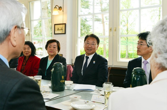 (서울=포커스뉴스) ADB 연차 총회 및 한중일 재무장관 회의 참석 차 독일을 방문 중인 유일호 부총리 겸 기획재정부 장관이 3일(현지시간) 프랑크푸르트 오버우워젤 지역에서 파독 교민 오찬 간담회에 참석해, 인사말을 하고 있다. <사진제공=기획재정부>