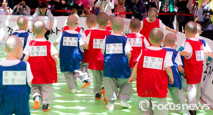 (서울=포커스뉴스) 4일 오후 서울 종로구 조계사 대웅전 앞에서 조계사와 홍법사 동자스님들이 축구대회에 참가해 실력을 겨루고 있다.