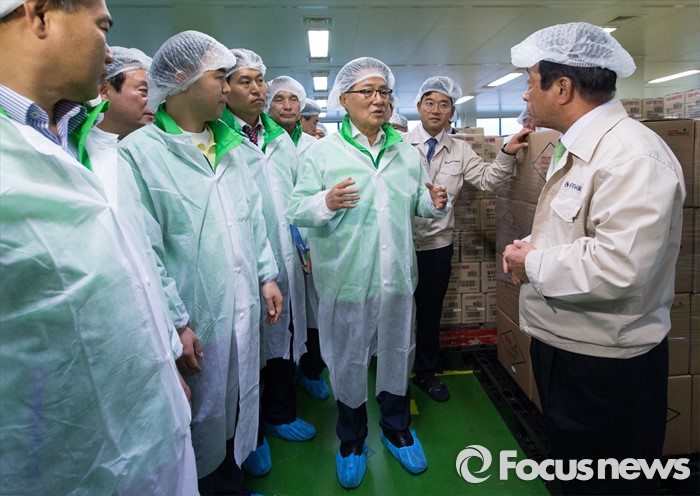 (인천=포커스뉴스) 박지원 국민의당 원내대표를 비롯한 20대 총선 당선인들이 4일 오후 인천 남동구 (주)서울화장품 인천공장에서 열린 국민의당 정책역량강화 집중 워크샵 '중소기업 대표 및 근로자와의 간담회'에서 화장품 제조 라인을 둘러보고 있다.