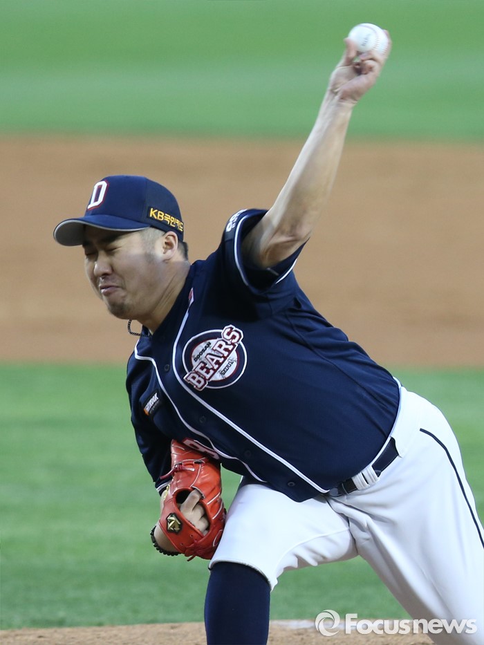(서울=포커스뉴스) 4일 서울 잠실구장에서 열린 2016 프로야구 두산-LG 경기에서 1회말 두산 선발투수 유희관이 투구하고 있다.