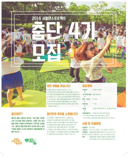춤을 사랑하는 서울시민이라면 누구나 참여할 수 있다. 다음달 25일 1차 합격자를 대상으로 오디션이 진행될 예정이다.