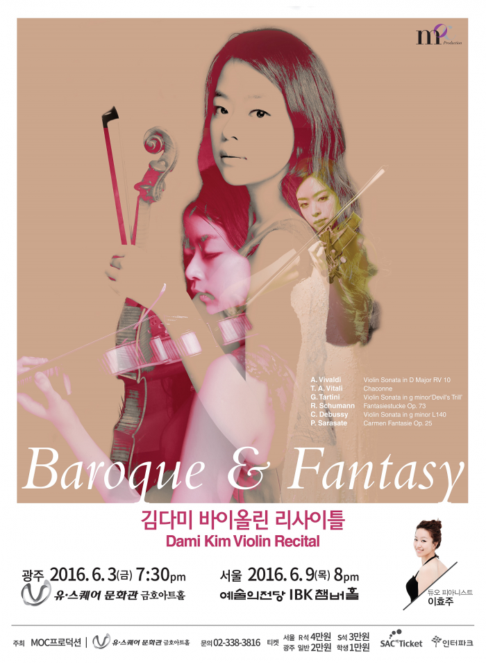 이번바이올린 리사이틀 '바로크 & 판타지'는 오는 6월9일 오후 8시 서울 서초구 예술의전당 IBK챔버홀에서 열린다. 티켓 가격은 R석 4만원, S석 3만원이다.김다미 바이올린 리사이틀 포스터.<사진제공=목프로덕션>