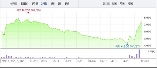 썬코어는 9일 오전 9시10분 현재 전일 대비 12.43%(840원) 상승한 7600원에 거래되고 있다. 썬코어는 3일과 4일에도 각각 29.93%, 8.51%의 상승폭을 기록한 바 있다.