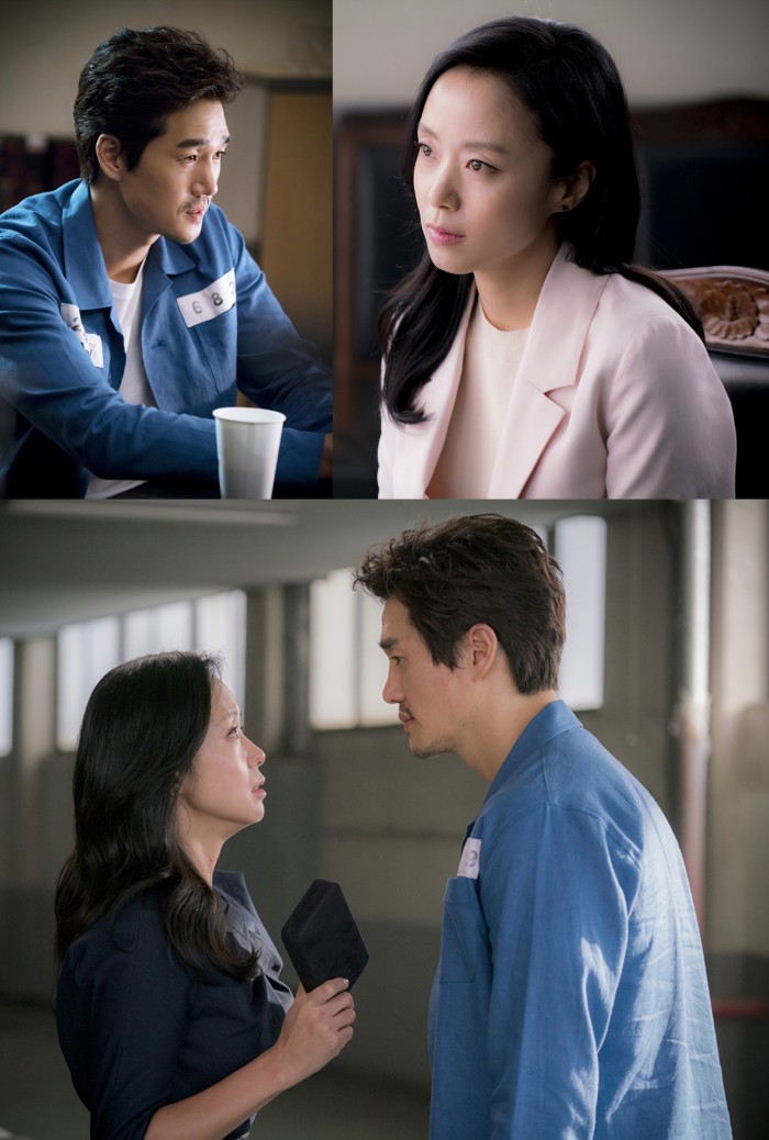 tvN '굿와이프'는 10일 주연 배우 전도연, 유지태, 윤계상의 현장 사진을 공개했다. 전도연은 긴장감 넘치는 분위기를 자아내고 있으며 죄수복 차림의 유지태는 묵직한 카리스마를 선보인다. 두 사람은 한 치의 양보도 없이 팽팽하게 시선을 마주하고 있다.