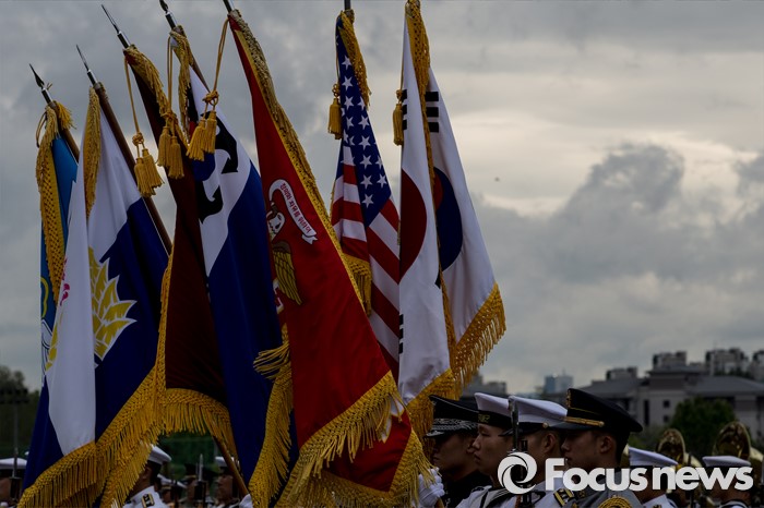 (서울=포커스뉴스) 10일 오후 서울 용산구 합동참모본부 대연병장에서 열린 환영 의장행사에서 장병들이 빈센트 브룩스 신임 한·미연합사령관 겸 주한미군사령관과 이순진 합참의장의 도착을 기다리고 있다.