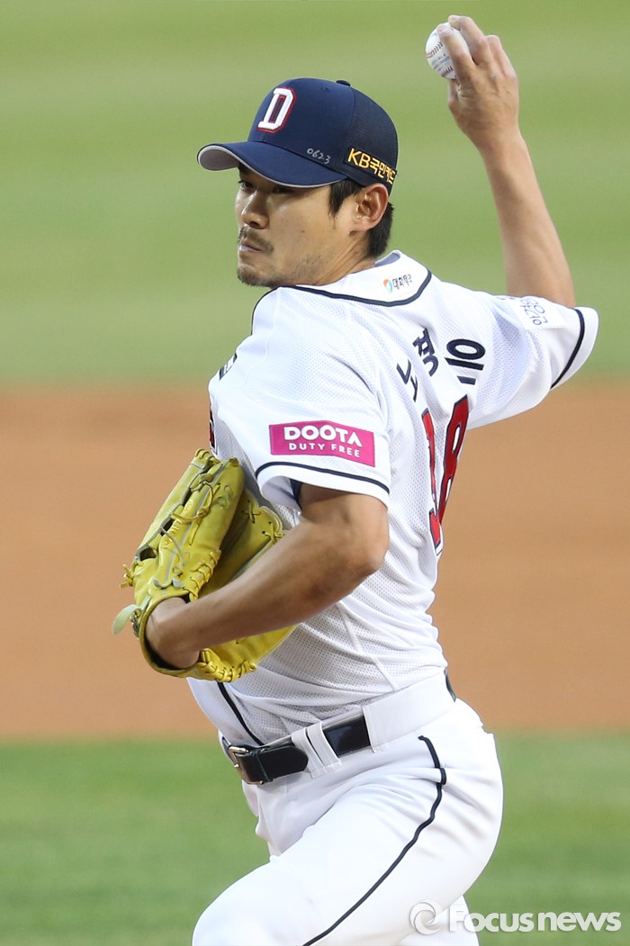 노경은은 지난 2003년 두산에 입단해 프로 통산 267경기 37승47패 7세이브 11홀드 평균자책점 5.07을 기록했다. 2012년과 2013년 연속 두자릿수 승리를 따내며 선발로 활약했다. 올시즌 선발진에 합류해 5선발로 나섰으나 3경기 2패 평균자책점 11.17로 부진해 2군으로 내려갔다.(서울=포커스뉴스) 7일 서울 잠실구장에서 열린 2016 프로야구 NC-두산 경기에서 1회초 두산 선발투수 노경은이 투구하고 있다. 2016.04.07 우정식 기자