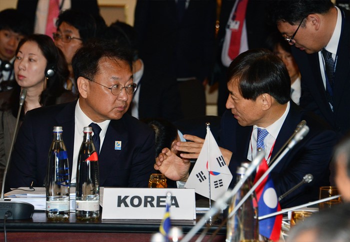 | △ 이주열 총재와 대화하는 유일호 부총리 |