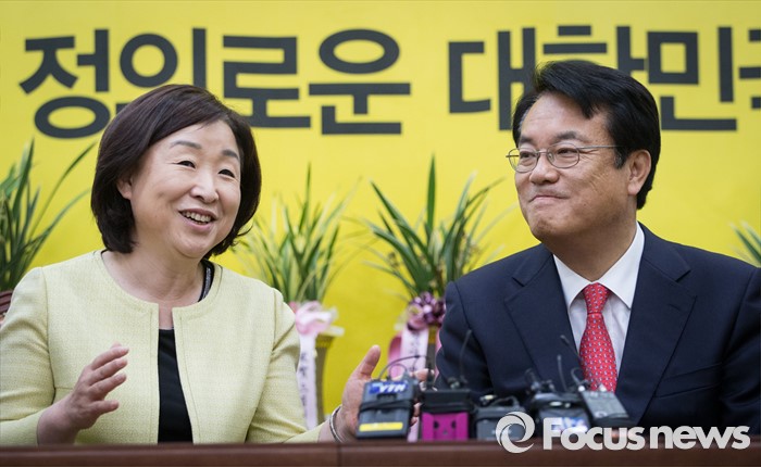 (서울=포커스뉴스) 정진석(오른쪽) 새누리당 원내대표가 11일 오전 서울 여의도 국회에서 심상정 정의당 상임대표를 예방해 대화하고 있다.