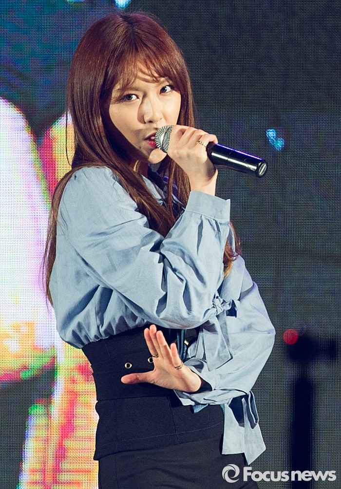 (서울=포커스뉴스) 11일 오후 서울 광진구 세종대학교에서 열린 '2016 세종대학교 축제'에서 걸그룹 나인뮤지스 멤버 소진이 무대를 선보이고 있다.