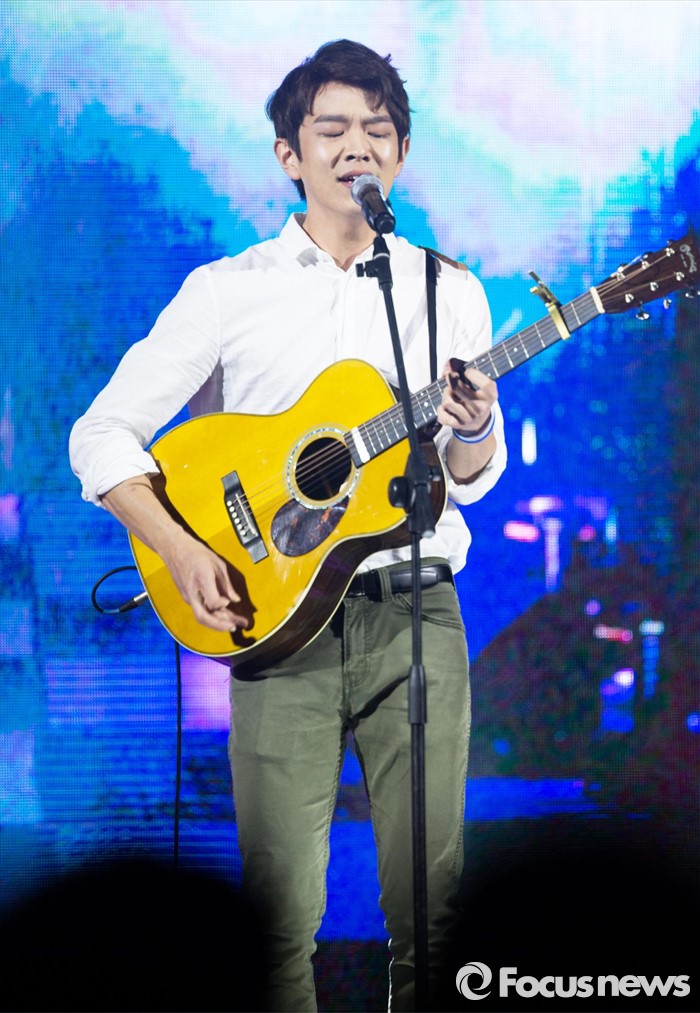 (서울=포커스뉴스) 11일 오후 서울 광진구 세종대학교에서 열린 '2016 세종대학교 축제'에서 가수 케빈오가 무대를 선보이고 있다.