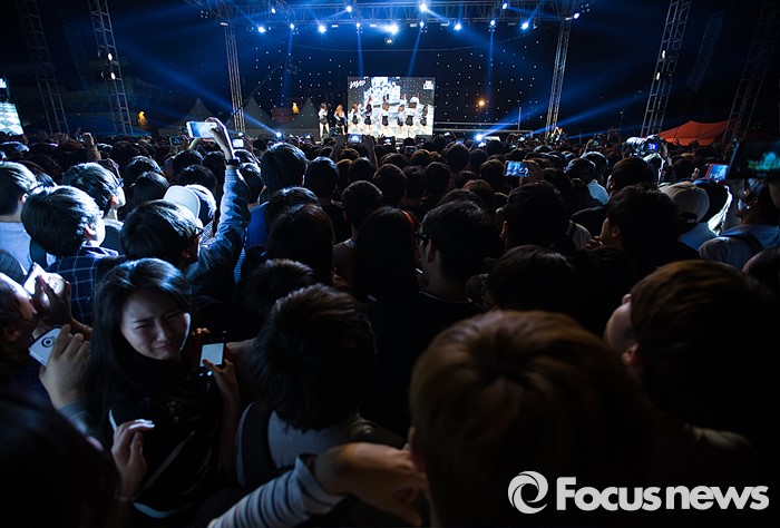 (서울=포커스뉴스) 11일 오후 서울 광진구 세종대학교에서 열린 '2016 세종대학교 축제'에서 학생들이 걸그룹 나인뮤지스 무대를 즐기고 있다.