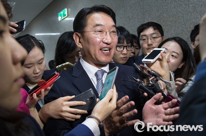 (서울=포커스뉴스) 청와대 현기환 정무수석이 12일 오전 국회를 방문해 정진석 새누리당 원내대표를 만난 후 국회를 나서며 기자들 질의에 답하고 있다.