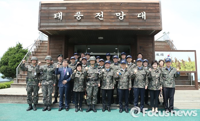 △ 군 관계자들과 기념촬영하는 국민의당