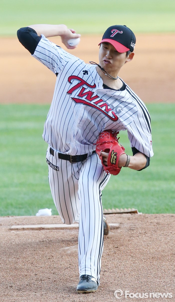 (서울=포커스뉴스) 12일 서울 잠실구장에서 열린 2016 프로야구 삼성-LG 경기에서 1회초 LG 선발투수 이준형이 투구하고 있다.