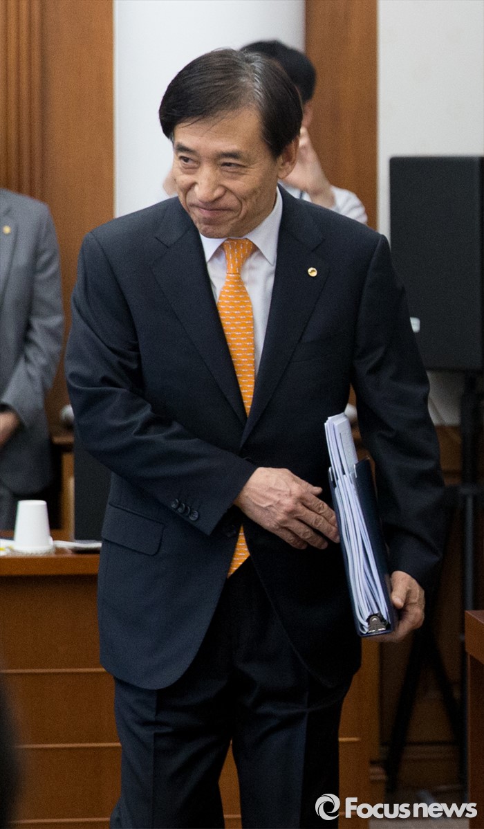 (서울=포커스뉴스) 이주열 한국은행 총재가 13일 오전 서울 중구 남대문로 한국은행에서 열린 금융통화위원회에 참석하기 위해 입장하고 있다.
