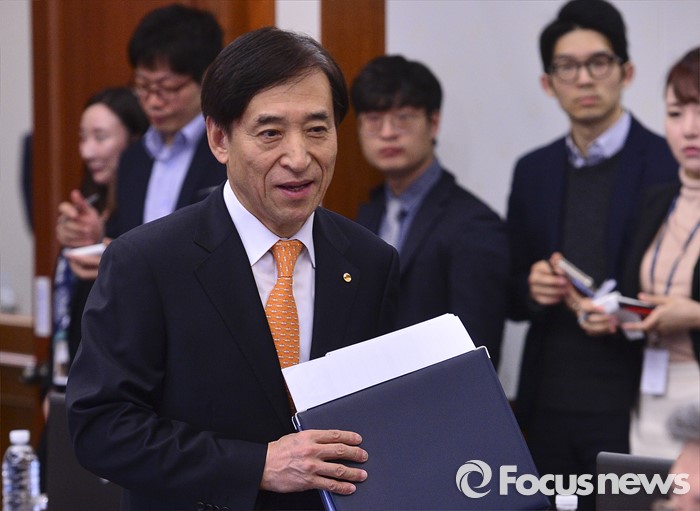 (서울=포커스뉴스) 이주열 한국은행 총재가 13일 오전 서울 중구 남대문로 한국은행에서 열린 금융통화위원회에 참석하고 있다.