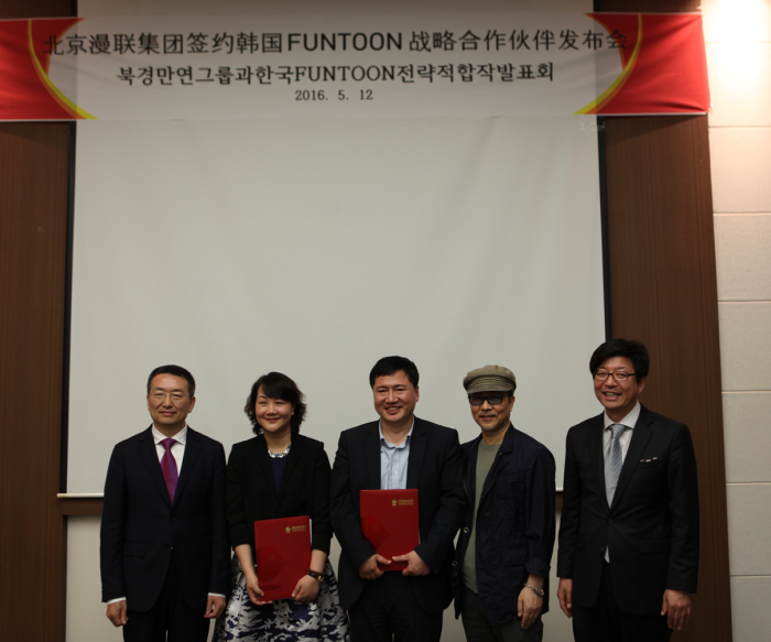 (서울=포커스뉴스) 펀툰 엔터테인먼트는 중국 최대 포털사이트 바이두의 관계회사인 바이두애니(Baiduani)그룹(중국명 만연그룹)과 지난 12일 한국만화영상진흥원 세미나실에서 한국 웹툰 60편에 대한 수출 계약을 체결했다.