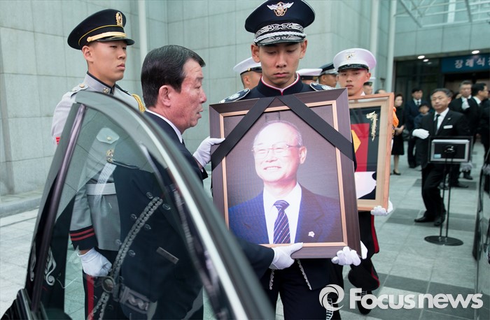 (서울=포커스뉴스) 14일 오전 서울 송파구 아산병원 장례식장에서 강영훈 전 국무총리의 발인식이 엄수되고 있다.