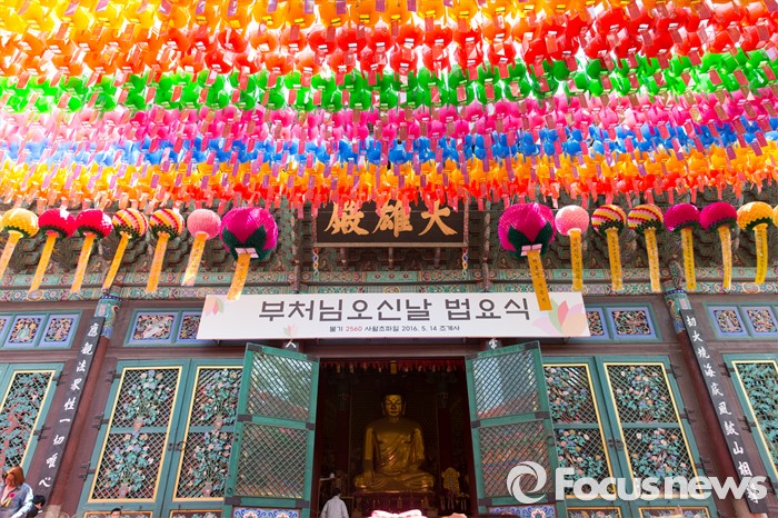 (서울=포커스뉴스) 14일 오전 서울 종로구 조계사 대웅전에서 불기 2560년 부처님 오신날 봉축 법요식이 진행되고 있다.