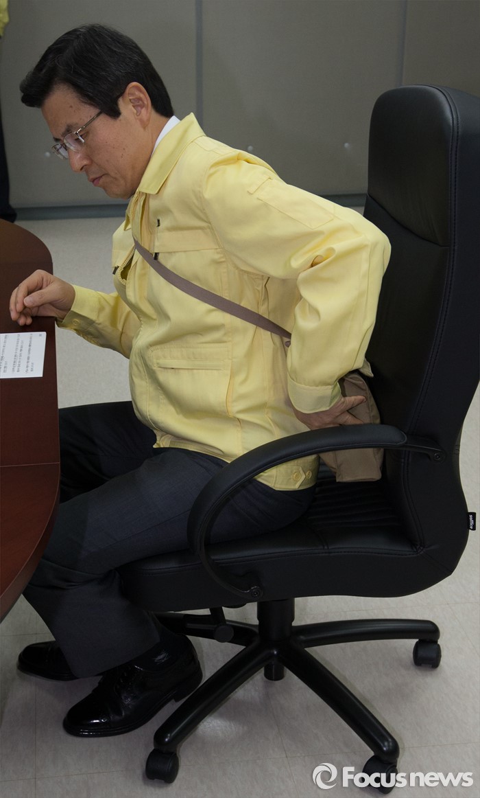 (세종=포커스뉴스) 황교안 국무총리가 16일 오후 세종시 정부세종청사 위기관리종합상황실에서 민방위의 날을 맞아 실시된 제401차 민방공 대피훈련에 참가하고 있다.