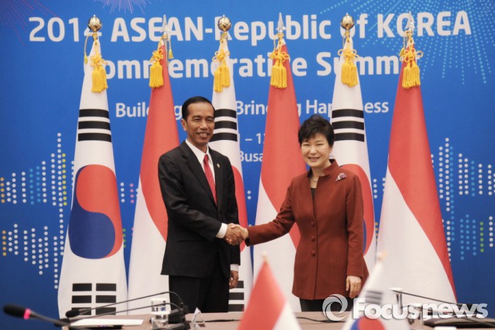 청와대는 "오늘 회담을 통해 양국간 전략적 동반자 관계구축 10주년을 맞아 창조산업, 해양 환경 등 신성장 동력에 중점을 둔 경제 협력 활성화, 그리고 여러 분야에 걸친 포괄적 파트너십 구축을 비롯해서 국제 평화와 안정에 대한 협력 방안 등 다양한 분야에 공동 관심사를 논의할 예정"이라고 설명했다.박근혜 대통령이 16일 청와대에서 조코 위도도(이하 조코위) 인도네시아 대통령과 한-인도네시아 정상회담을 개최했다. 사진은 지난 2014년 12월 부산에서 열린 한-아세안(ASEAN) 특별 정상회의 계기 양 정상의 회담. 2014.12.11. <사진출처=청와대>