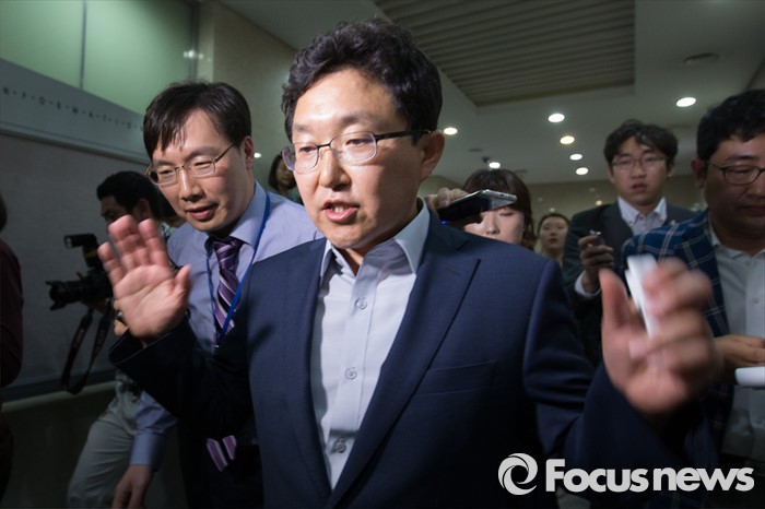 (서울=포커스뉴스) 김용태 새누리당 의원이 17일 오후 서울 여의도 정론관에서 혁신위원장 사퇴 의사를 밝힌 후 국회 기자회견장을 떠나고 있다.