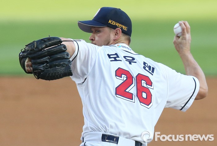 (서울=포커스뉴스) 17일 서울 잠실구장에서 열린 2016프로야구 KIA-두산 경기에서 1회초 두산 선발투수 보우덴이 투구하고 있다.
