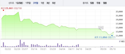 현대상선의 자율협약의 조건으로는 용선료 협상 타결이 포함돼있다. 이에 이 협상이 틀어질 경우 법정관리(기업회생절차)가 불가피한 상황이다.주가흐름<사진출처=네이버 캡쳐>