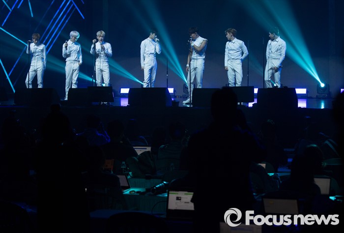 (서울=포커스뉴스) 18일 오후 서울 광진구 예스24 라이브홀에서 열린 아이돌그룹 몬스타엑스의 세번째 미니앨범 'THE CLEAN PART. 1 LOST' 발표 쇼케이스에 참석한 멤버들이 신곡 'Ex girl'의 무대를 선보이고 있다.