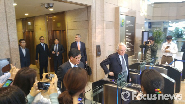 이날 협상에는 현대상선과 현대상선의 자문사인 밀스타인, 그리스 선주사인 나비오스(Navios)·다나오스(Danaos)·CCC가 참석했으며, 싱가포르의 EPS는 컨퍼런스콜로 참여했다. 영국 조디악 마리타임은 불참했다.18일 마크 워커 현대상선 측 투자자문(Financial Advisor)이 협상을 마치고 현대그룹 본사 서관 입구를 통과하고 있다. 2016. 05. 18 이형진 기자 heyhyungjin@focus.co.kr