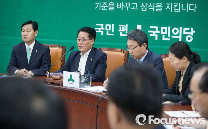 (서울=포커스뉴스) 박지원(왼쪽 두번째) 국민의당 원내대표가 19일 오전 서울 여의도 국회에서 열린 국민의당 원내대책회의에 참석해 모두발언을 하고 있다. 왼쪽부터 김관영 원내수석부대표, 박 원내대표, 김성식 정책위의장