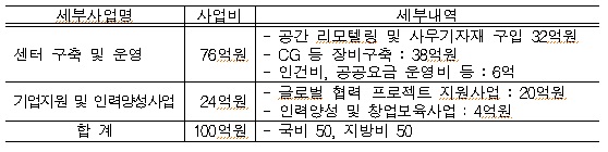 김용수 미래부 정보통신정책실장은 “동아시아는 이미 세계 최대 애니메이션 시장으로 성장하고 있어 우리나라 애니산업의 새로운 도약을 위해서는 아시아시장 개척이 중요하다”며 “ACA센터를 중심으로 한국과 중국간 애니 공동제작 등 협력을 강화하고 이를 바탕으로 미국 등 세계시장으로 진출하기 위해 미래부도 관련 지원을 아끼지 않겠다”고 말했다.ACA센터 구축과 운영위한 정부 예산 내역.<표제공=미래부>